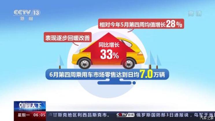 数据显示,6月第四周乘用车市场零售达到日均7.0万辆,同比增长33%,表现逐步回暖改善,相对今年5月第四周均值增长28%。享受减征政策的乘用车排量限制从1.6升提高到2.0升,惠及的范围明显扩大,有利于进一步释放汽车消费潜力,也有利于提振汽车产业,进而带动相关产业发展。