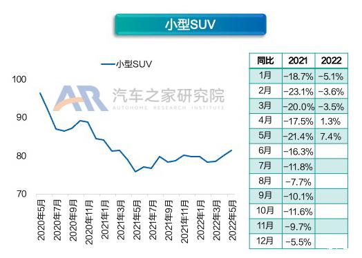 2、5月纯电动小型SUV市场的价格指数为111.73,同比增长21.83%,环比下滑0.28%;