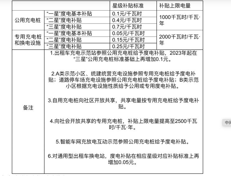 1. 2022年1月1日起支付的充电费用可享受专享度电补贴,2022-2023年标准为0.4元/千瓦时;