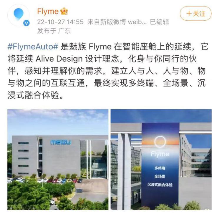 此前,Flyme官方账号上发布信息称,魅族Flyme会是在智能座舱上的延续,它将延续Alive Design设计理念,化身与你同行的伙伴,感知并理解你的需求,建立人与人、人与物、物与物之间的互联互通,最终实现多终端、全场景、沉浸式融合体验。