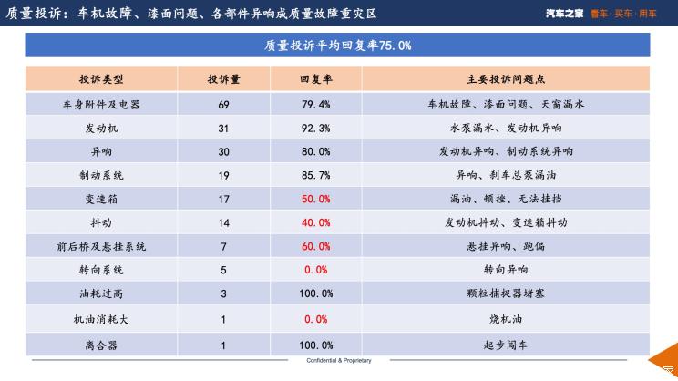 根据本站投诉平台数据显示,10月份质量投诉主要问题包括车身附件及电器故障、异响、发动机问题。其中车身附件及电器投诉占比最高,主要投诉点在车机故障、漆面问题和天窗漏水。尤其是近几年车机系统不断升级,对系统的软硬件兼容提出新的挑战,诸如系统卡顿、死机、黑屏等故障层出不穷。在此,我们提醒消费者购车时不要只看参数,也要看看口碑和试驾体验。排在第二名的是发动机问题,主要问题是发动机异响和水泵漏水。排名第三的是异响,主要包括发动机异响和制动异响等。还是要提醒广大网友,多关注本站口碑榜。