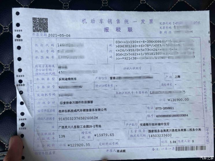 『王女士购车发票』