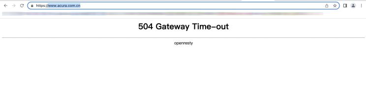 日前,点击广汽讴歌官网(www.acura.com.cn),页面已经显示504 Gateway Time-out,无法打开。打开广汽讴歌多个销售门店的微博及公众号,更新也基本止步于2021年或2022年中。
