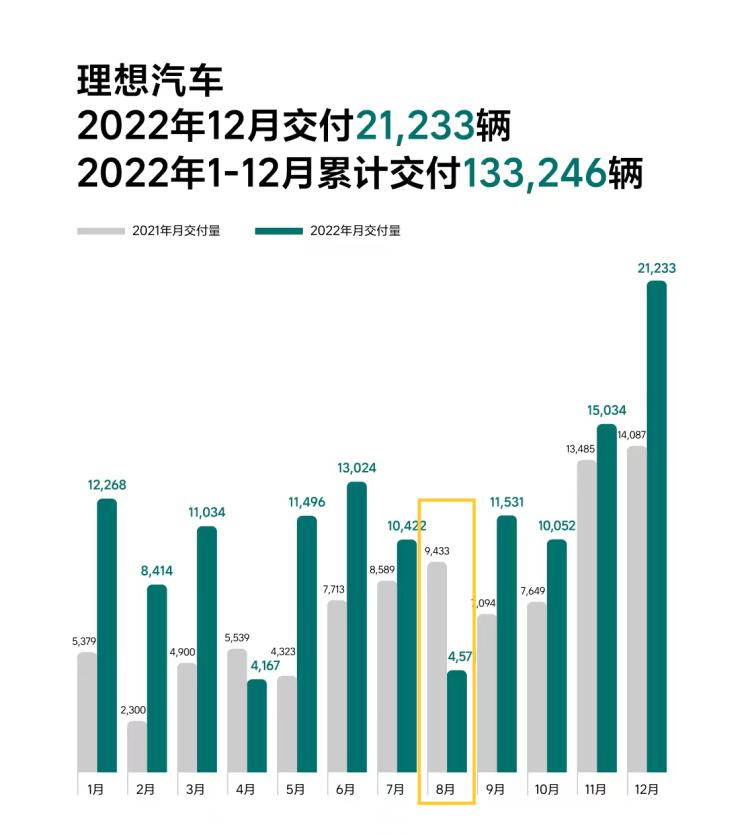 在L9发布但没交付,ONE的生命末期那段时间,理想迎来了销量阵痛,一度在新势力中垫底,但2022年9月,理想L8和L7这两只强心剂打下去,再加上L9的交付,直接给理想刷出了12月破两万的好成绩。