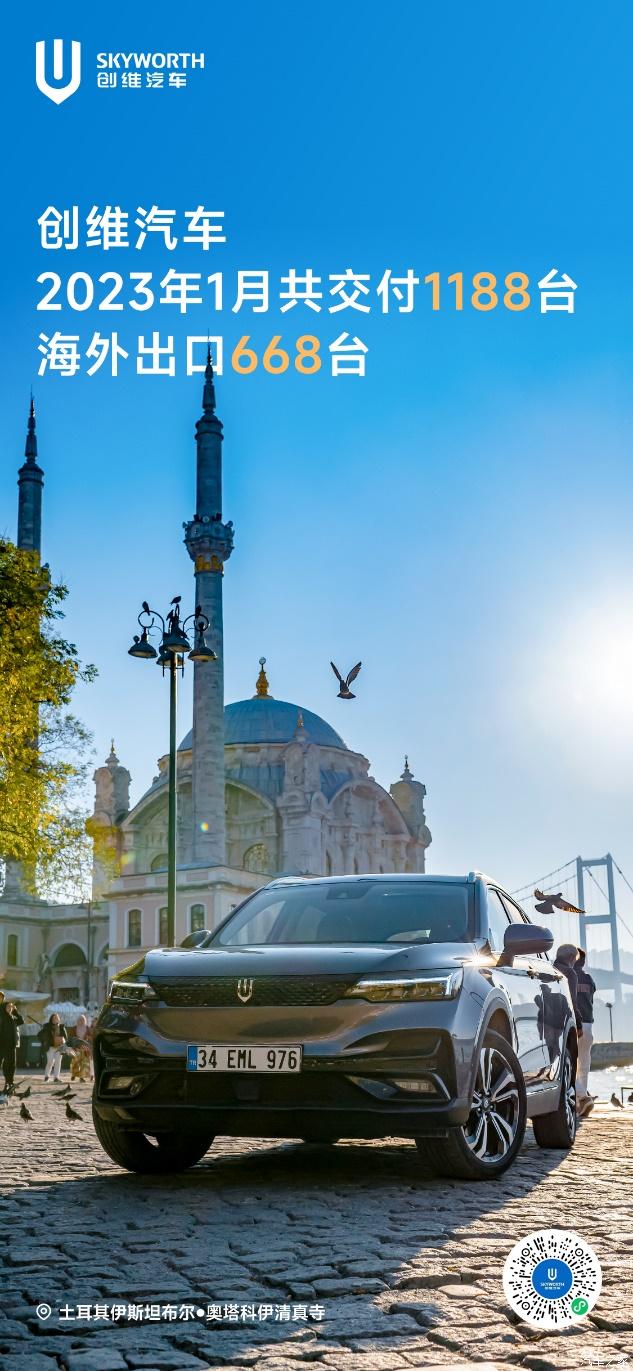 [本站 资讯] 近日,创维汽车公布最新交付数据――2023年1月共交付1188台,其中海外出口668台。创维汽车指出,2023年新能源汽车赛道挑战更加艰巨,公司将根据2023年经济效益调整国内外产品结构,国内主销混动车型、海外发力纯电车型,必保全年销售目标40000台。其中,国内32000台,海外8000台。