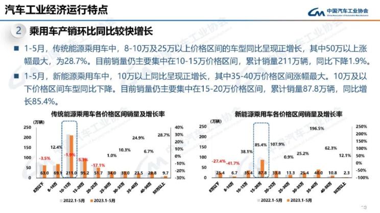 5月,乘用车产销分别完成201.1万辆和205.1万辆,环比分别增长13.1%和13.3%,同比分别增长18.2%和26.4%。其中,传统燃油乘用车国内销量114.2万辆,比上年同期增长10万辆,环比增长16%,同比增长9.6%。1-5月,乘用车产销分别完成906.3万辆和900.1万辆,同比分别增长10.6%和10.7%。