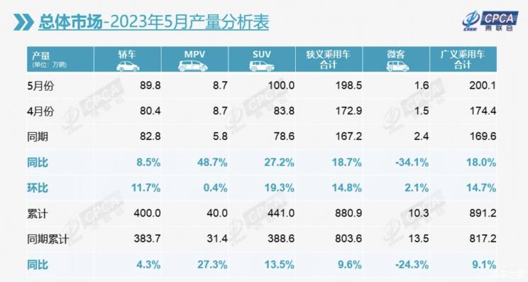[本站 资讯] 日前,乘联会公布了最新的5月份全国轿车产销数据,2023年5月轿车市场零售达到89.8万辆,同比增长8.5%,环比增长11.7%;今年1-5月累计零售达400万辆,同比增长4.3%。上海车展成为推动国内汽车消费的平台,同时随着国六B库存延期销售的信息明确,市场情绪进一步稳定,零售保持较旺局面。
