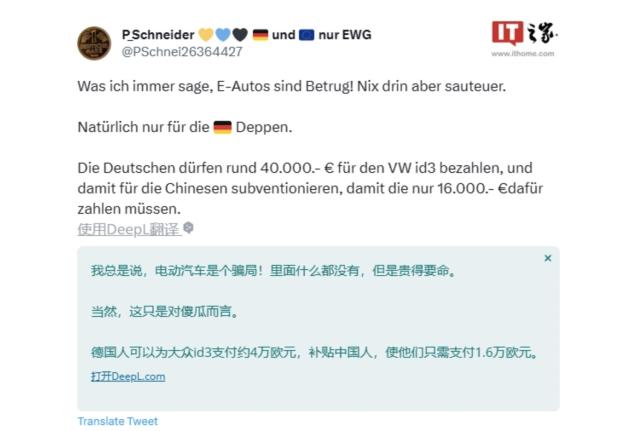 『大众ID.3在中国大降价引发德国网友不满(图片来源IT之家)』