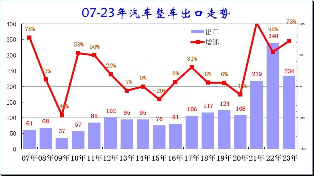 近几年中国汽车出口持续增高,特别是随着新能源汽车产销的扩大,仅2023年一季度,中国汽车出口量已经超越日本,成为世界第一,这是中国汽车产业发展的一个里程碑,显示着中国汽车出口正在强势崛起。据业内预测,今年我国汽车出口将突破400万辆,这标志着中国整车在汽车全球市场的占有率越来越高,同时汽车零部件也将随着整车出口,进入品牌出海的新阶段。
