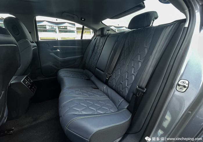 该车轴距2848mm,后排腿部空间很有优势,缺点就是后排头部空间相对而来没那么大以及后排座椅的靠背角度稍微直了点,假如稍微牺牲一下腿部空间,把后排座椅往前调“躺”一点,那后排的乘客会坐得更加舒服。