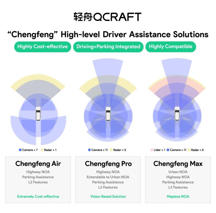 据悉,该方案融合了轻舟领先的超融合BEV感知、独创的时空联合规划等技术,可以带来更好用、消费者更爱用的辅助驾驶体验,并能够针对车企客户的不同需求提供针对城市、高速等不同场景、不同等级的配置方案。包括轻舟乘风Air版、轻舟乘风Pro版和轻舟乘风Max版。