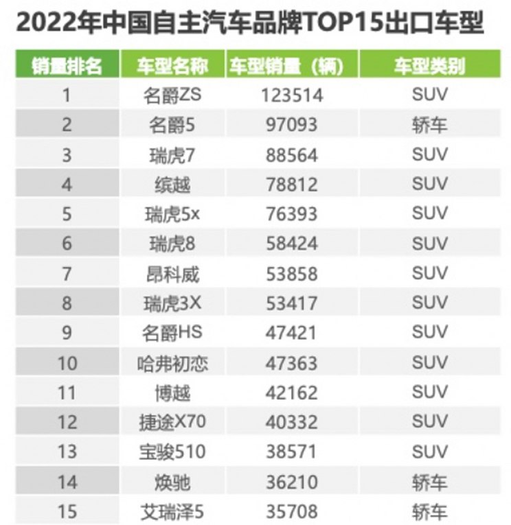 『2022年中国品牌汽车出口销量排名,前15名中奇瑞占据6席(数据来源:艾瑞咨询)』