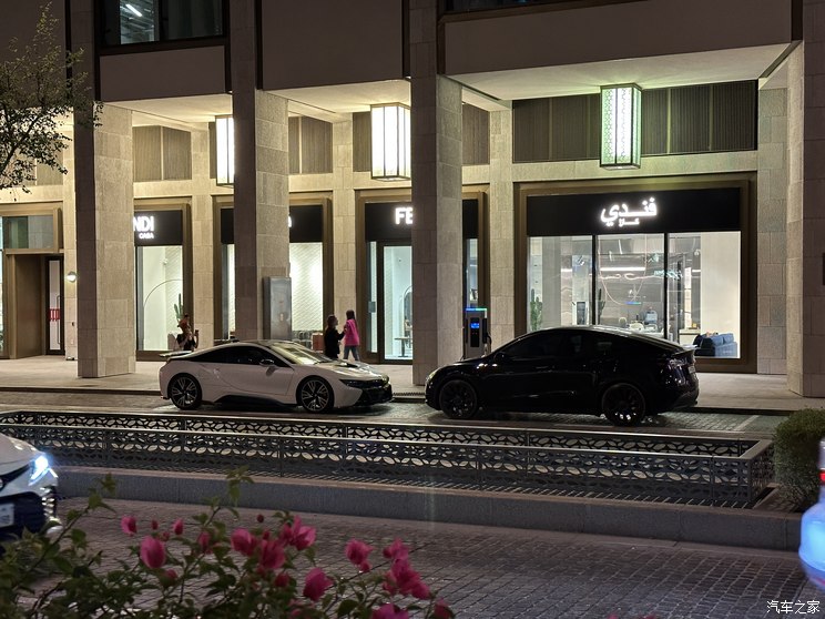 『新能源车在卡塔尔多哈街头十分罕见,街边的宝马i8和特斯拉Model Y』