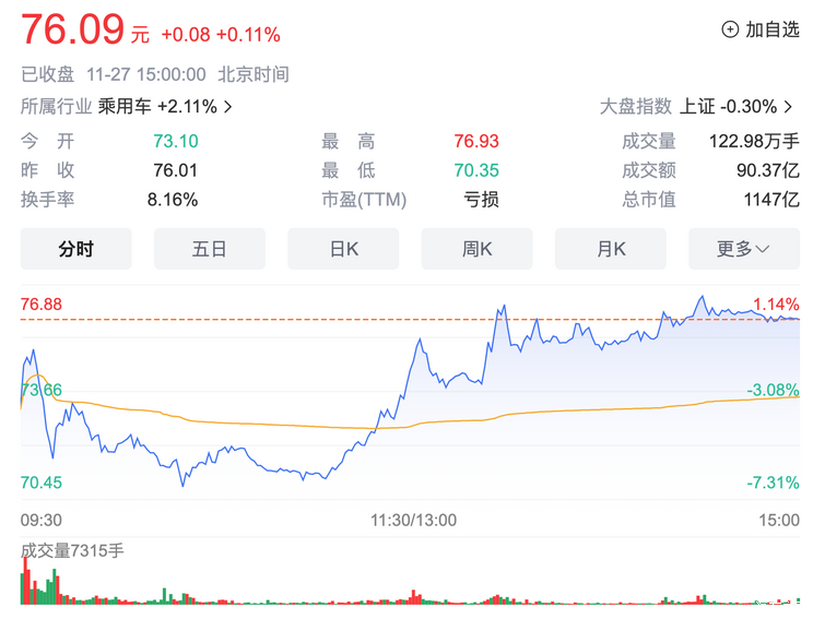 赛力斯股价11月27日开盘报73.10元,振幅达8.66%,总市值1146.97亿元。赛力斯已收到华为关于共同投资新公司、共同打造电动化及智能化开放平台的邀请。新公司将专注于智能网联汽车的智能驾驶系统及增量部件的研发、生产、销售和服务。赛力斯与华为的深度合作已持续三年,联合打造的AITO问界车型广受市场认可。华为车BU的战略调整不会影响双方的长期战略合作,也不影响赛力斯的零部件供货关系。