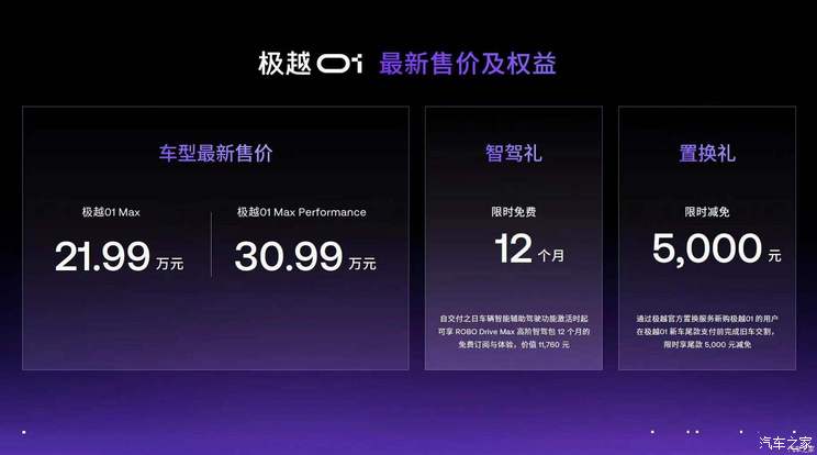 ■极越01价格权益调整 全系直降3万元