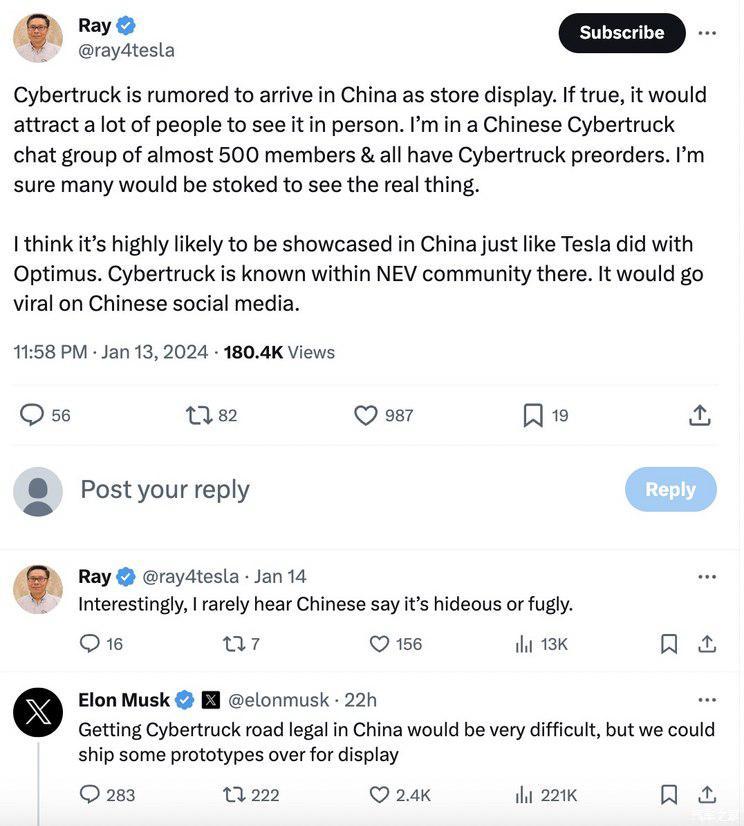 ● Cybertruck在中国上路难题,马斯克回应亮点多