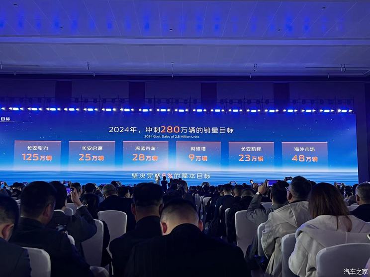 2024年集团销量目标280万辆,同比提升9.7%。其中中国品牌板块销量220.4万辆,同比提升14.6%,新能源销量75万辆,同比提升55.9%,海外销量48万辆,同比提升33.2%。2024年各品牌经营目标:长安引力125万辆,长安启源25万辆,深蓝汽车28万辆,阿维塔9万辆,长安凯程23万辆,海外市场48万辆。同时,要坚决完成5%的降本目标。