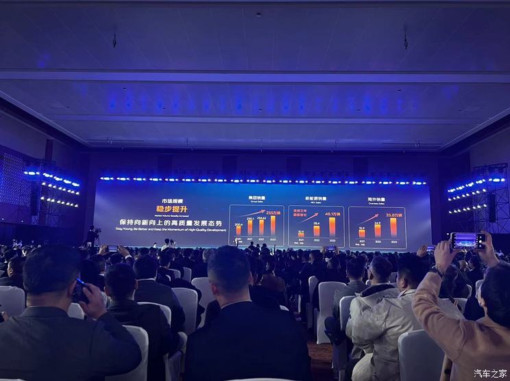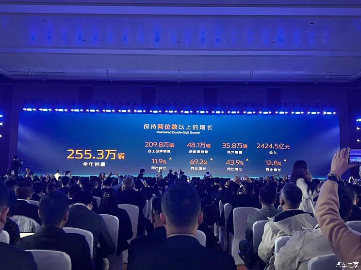 各项经营指标均保持了两位数以上的增长,全年销量255.3万辆,其中,中国品牌销量209.8万辆,同比增长11.9%;新能源销量48.1万辆,同比增长69.2%;海外销量35.8万辆,同比增长43.9%;收入2424.5亿元,同比增长12.8%。市场规模稳步提升,从2020年的200.4万辆,到2023年销量突破255万辆,特别是,新能源和海外出口快速扩张、大幅增长,新能源三年实现连续翻番增长,海外增长达43.9%。