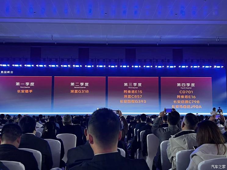 2024年一季度,全球首款增程皮卡长安猎手将开启交付;二季度,深蓝硬派SUV G318将正式上市;三季度,阿维塔旗下第二款SUV E15、深蓝C857、长安凯程G393将与大家见面;四季度,可变形的数智新汽车CD701、阿维塔中型轿跑E16、长安启源C798将加入产品阵营。