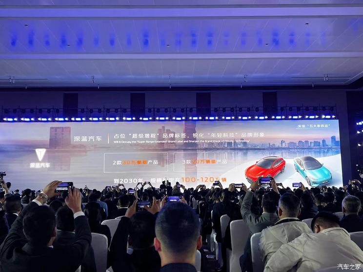 深蓝汽车,面向年轻态客户,占位“超级增程”品牌标签,锐化“年轻科技”的品牌形象,坚持打造2款30万辆级产品,3款20万辆级产品,进一步推动品牌向上拓展。到2030年,规模稳定在100-120万辆。
