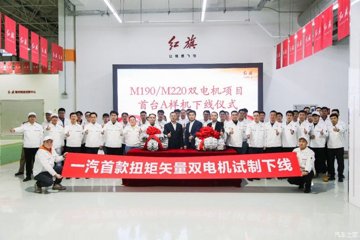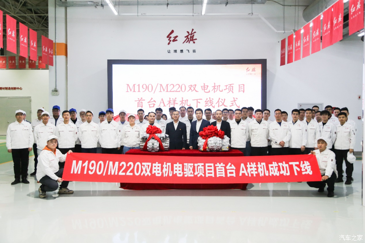[本站 资讯] 近日,我们从官方获悉,红旗M190/M220双电机电驱项目首台A样机在研发总院试制部成功试制下线。M190/M220双电机项目基于M190/M220平台技术升级的高压平台、SiC功率模块、扁线四电机扭矩矢量电驱总成开发,实现性能、操控与安全的提升。