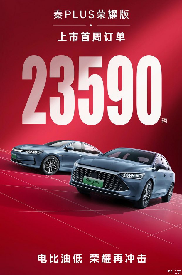 『比亚迪秦PLUS DM-i荣耀版上市首周订单已达23590辆』