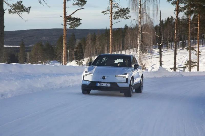 而我们开的这辆沃尔沃EX30“海云蓝”,色调灵感则来自瑞典雪景、冬天的冷空气和覆盖着浮冰的冰冻海洋,特别应景。