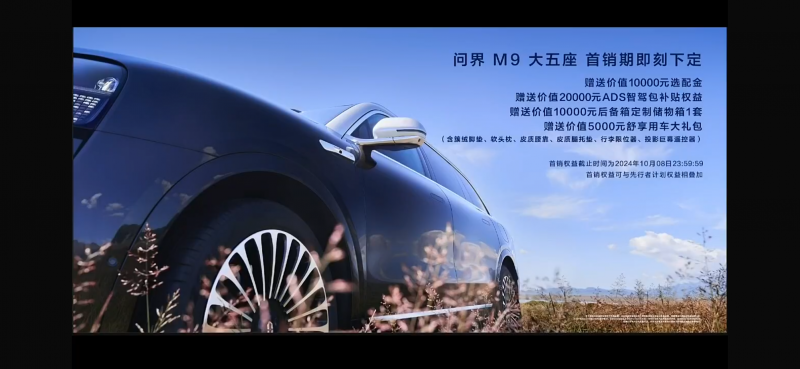 高端产品,源于高端制造。基于赛力斯汽车强大的技术实力与“智造”实力,问界打造了极具竞争力和差异化的高端智慧产品矩阵。问界M9首销期即刻下定的用户将获赠价值10000元选配金、价值20000元ADS智驾包补贴权益等福利。针对定购用户,问界M9大五座开启先行者计划,限额1000名,首销权益可与先行者计划权益相叠加。
