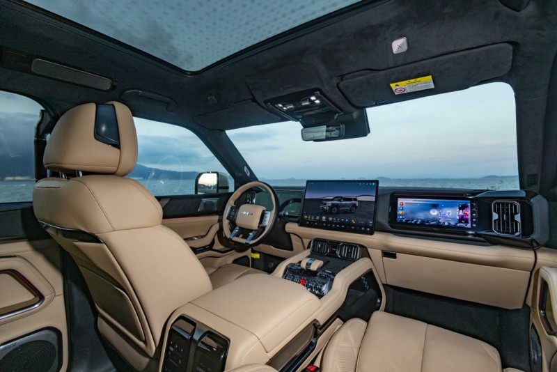 秉持“未来星舰美学”的豹8,硬核科幻气质浑然天成。其内饰设计颠覆了人们对传统硬派SUV的简陋印象,融入的星舰钥匙般的门板扶手、实木透光饰板等精湛细节,营造出不凡格调。同时,全功能版云辇-P系统也为豹8带来了极佳的滤震和减震效果,让驾乘者在各种路况下都能享受到舒适的乘坐体验。
