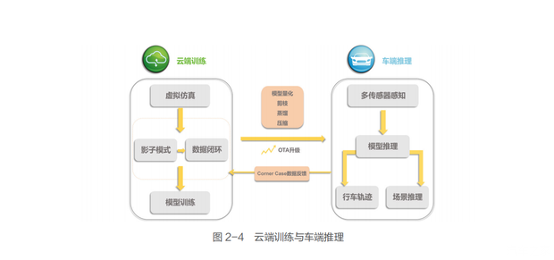 在云端超算集群通过分布式架构训练端到端神经网络模型,结合强化学习优化复杂决策策略,并通过模型量化、剪枝、蒸馏、压缩等技术实现轻量化,适配车载算力平台。
