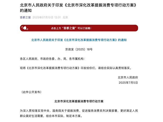 [本站 资讯] 7月11日,我们从首都之窗官方微信公众号处了解到,北京市人民政府印发《北京市深化改革提振消费专项行动方案》,其中提到完善汽车消费新生态,优化小客车指标配置,更好服务家庭用车需求。