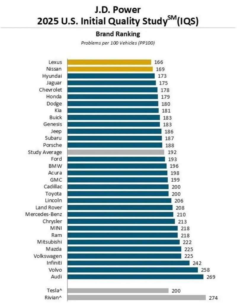 根据J.D. Power发布的“2025年美国新车质量调查(IQS)”结果,雷克萨斯以优异成绩斩获全品牌第一名,成为问题数最少(PP100数值最低)的汽车品牌,不仅大幅超越行业平均水平,也领先于所有豪华品牌与主流品牌,充分展现了雷克萨斯在产品可靠性与制造品质上的独特优势。雷克萨斯能够在各项极具含金量和说服力的权威榜单上屡屡霸榜,无疑进一步巩固了其在高端市场的品质标杆地位,也成为了根植于广大用户心中的品质神话。