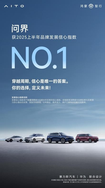 从首开用户参与车辆工厂终检,“认可才提车”先河,到常态化落地,问界的市场影响力、品牌好感度、产品满意度持续提升。在豪华车领域树立全新标杆的问界,赢得了用户和行业权威机构的认可,在近期杰兰路发布的《2025年度上半年新能源汽车品牌健康度研究》报告中,问界凭借用户对其未来发展的“超强信心”,蝉联品牌发展信心指数第一,问界M9以85.2的NPS高分,不仅位列中大型及以上SUV车型净推荐值第一,更荣获车型NPS总榜冠军。不久前,问界M9还荣登J.D.Power魅力指数榜单,位列豪华插电混动SUV榜首。