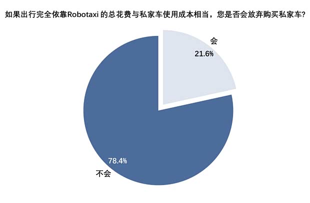 但是,值得注意的是,在本站研究院的调研中,仍有近8成的受访者在RoboTaxi比私家车便宜的情况下,不愿意放弃买车。说明即使对于“以满足基础出行为目的”购车人群,用车成本也不是决定是否买车的唯一考量。