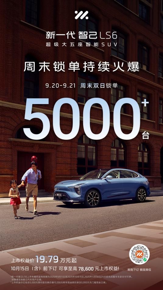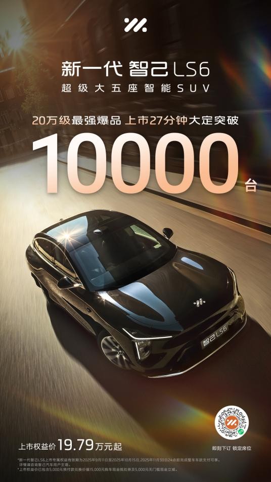 新一代智己LS6共推出9大版本,上市权益价19.79万元~26.99万元。自发布以来,市场反响热烈:上市当晚,仅27分钟大定突破10,000台;9月20日~21日周末双日锁单破5,000台;门店试驾持续爆满,热度不减,“20万级最强爆品”态势尽显。