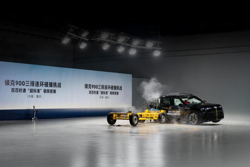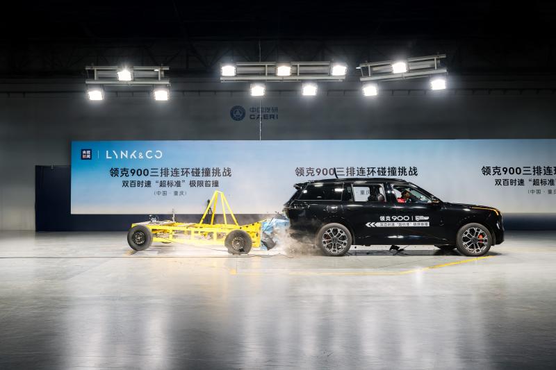 领克900完成三排连环碰撞极限挑战——中国首次双百时速“超标准”连环碰撞测试