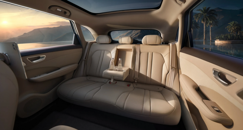 尚界 H5 以华为极致简约美学为设计核心,车身采用逐浪曲线与 4 倍轮轴比,搭配六款时尚车色与狭长 LED 灯组,锐利折线与光影处理营造出强烈的运动感和都市时尚气质,更受追求个性与动感的年轻群体青睐。空间利用上兼顾实用与灵活,2840mm 轴距配合 67% 的得房率,保证了日常乘坐的舒适性;601L超大后备箱搭配 124L前备箱,形成充足的储物空间,无论是大件行李、婴儿车还是露营装备都能轻松容纳。此外,2.3㎡穹顶天幕与 100% 遮光电动遮阳帘的组合,既提升了车内通透感,又能有效隔绝强光,兼顾了视觉体验与实用性。