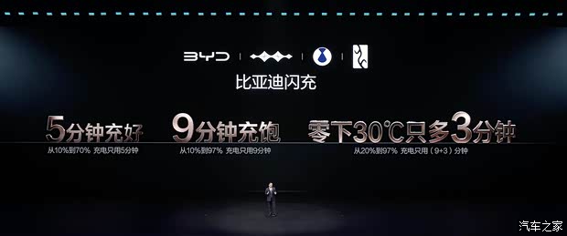 [本站 资讯] 3月5日,比亚迪举办第二代刀片电池暨闪充技术发布会,将纯电车型技术带入新时代,新技术不仅提升了电池的能量密度,还带来了更快的充电速度。同时,比亚迪还将筹建大批闪充充电站,新的具备闪充技术的车型,也将在尾标有专属的标识。