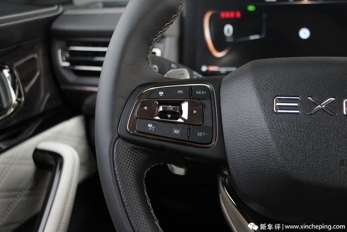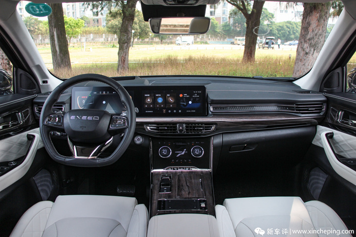 同时硕大且垂直的车头中网,也赋予了它很强的气场。为了凸显高级感,引擎盖前方宽大的镀铬饰条上,还布置了“EXEED”车标,金属质感还是挺别致的。同时,下方中网的镀铬饰条采用了古铜色的处理,看起来不至于太俗。