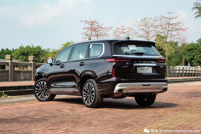 车尾后窗下沿的镀铬饰条和车头相呼应,与贯穿式尾灯一并给车尾增加了些层次感,不过私以为除了那根镀铬饰条外,辨识度并不高。底部的方型双边排气管可是实打实的排气,这种方方正正的力量感营造得不错。总体而言,星途揽月部分不会显得很出挑,风格是相当成熟稳重的。