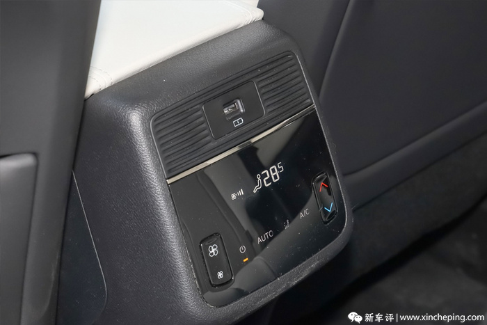 在空间方面,揽月的第二排能够前后移动,为第三排乘客争取更多的空间,调整到最后时,身高176cm的乘客在第二排还有相当富裕的腿部空间,统一乘坐舒适性同样令人满意。但要说这是台定位高端的旗舰车型嘛,后排空调调节位置的质感还是有所欠缺的,而且仅提供一个USB充电接口,以现在的电子产品使用环境来说似乎是少了些。