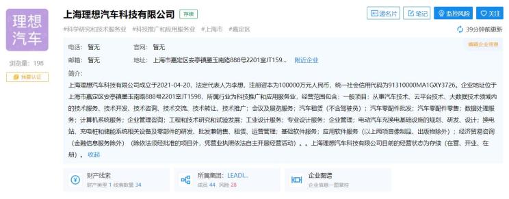 根据企查查App显示,4月20日,以从事汽车技术开发为主的上海理想汽车科技有限公司成立,法定代表人为李想,企业的经营范围包含:从事汽车技术、云平台技术、大数据技术领域内的技术服务、技术开发;电动汽车充换电基础设施的规划、研发、设计;换电站、充电桩和储能系统相关设备及零部件的研发等。也从侧面印证了理想汽车接下来的研发方向。