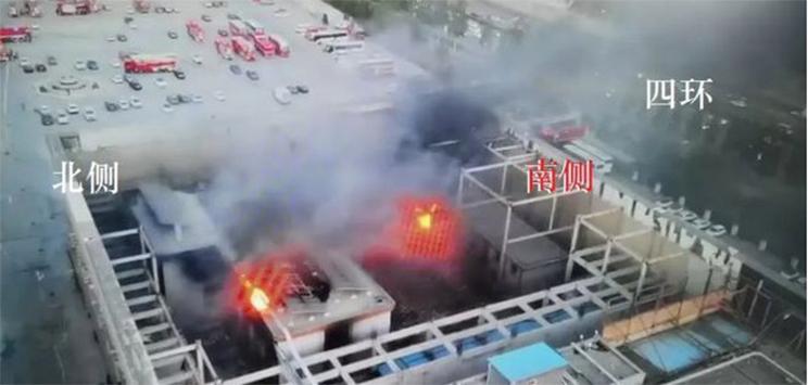 从事故图片来看,消防指战员使用消防用水去扑灭南区储能系统火灾时,北区突然发生爆炸,由于南区、北区距离较近,消防用水在喷淋南区时可能接触到了北区的储能系统,由于储能系统是高压带电体,水喷淋可能引起带电体及其线路短路诱发火灾或扩大电气事故。因此,在储能系统火灾前期,有大量储能电池还未受到影响的情况下,采用水作为消防灭火介质,还是需要慎重考虑的。