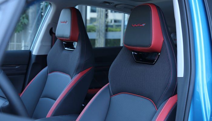 特别像新样式的大灯,还在灯角位置加入了三道红色线条,看起来还真的有画龙点睛的味道。而且和熏黑轮圈里面包裹的红色卡钳相互呼应上后,你会觉得这个色彩细节是有讲究的。