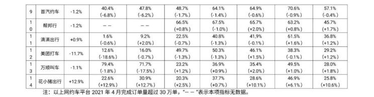 2021年4月,全国网约车监管信息交互平台共收到订单信息7.6亿单。其中,当月订单量超过30万单的网约车平台共14家,与3月相比,新增蓝道出行、神州专车2家订单量超过30万单;东风出行、方舟行从3月订单量超过30万单降到30万单以下。